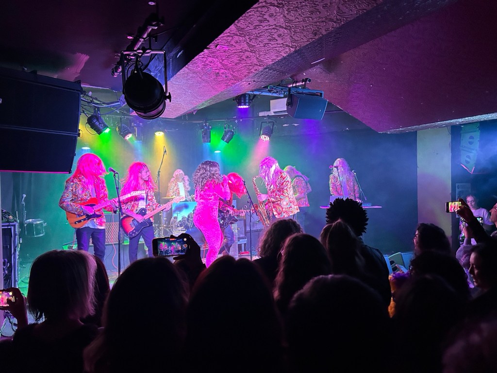 Wigs! Love the funky jackets and roving sax.